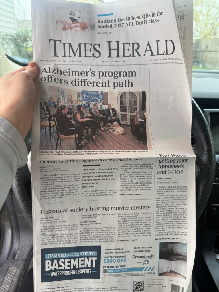 Memory Care in Michigan Lakeshore Woods Featured in The Times Herald: A Different Approach to Alzheimer’s Care